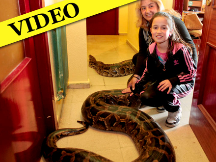 Den imponerende slange, Tundra, der er hele fem meter lang, bor til daglig sammen med sin spanske familie Miguel Huete og Mercedes Antón i en lejlighed i Calle Médico Félix Prieto