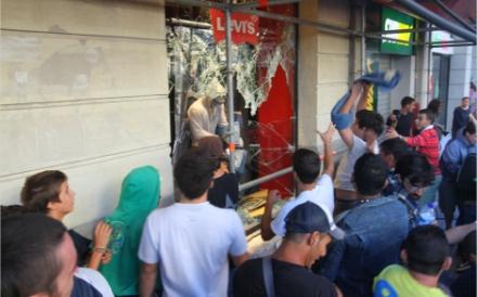 Flere hundrede unge autonome gik på et tidspunkt amok og smadrede butiksvinduer, oversprøjtede facader med grafitti og satte ild til biler.
