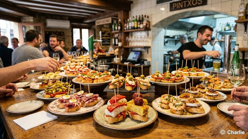 San Sebastián har flere Michelin-stjerner per indbygger end nogen anden by i verden. I den gamle bydel, Parte Vieja, bugner bardisken af små kreative mesterværker på brød. Pintxos er ikke bare en forfinet tapas, det er baskisk identitet serveret på brød.