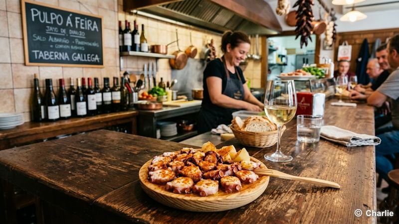 Er du til skaldyr, er Galicien et sandt mekka. Atlanterhavet overalt, og Rias Baixas, med de dybe fjordlignende havbugter, producerer muslinger, østers og kammuslinger af høj kvalitet. Pulpo á feira er regionens signaturret. Blæksprutten koges hel i kobbergryder, klippes i skiver med saks og lægges på en træplade med olivenolie, groft salt og røget paprika. Simpelt og helt fantastisk med et glas kold albaríño til. Byen Melide, som ligger langs Camino de Santiago regnes af mange for det bedste sted at spise Pulpo á feira.