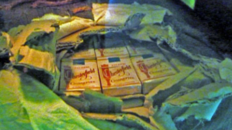 Den britiske kvinde kørte i en Gibraltar-indregistreret bil og havde 2.500 pakker Chesterfield-tobak med i bagagerummet.