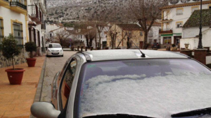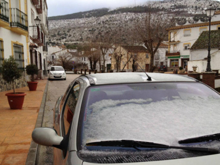 I Axarquía lå der onsdag morgen et fint lag sne på toppen af bjergkæderne Sierras de Camarolos, Enmedio i Alfarnate, Alfarnatejo, i Naturparken Tejeda og i Almijara, på grænsen mellem Málaga og Granada Provinserne, lå der også sne.