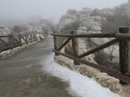 Også på El Torcal i Antequera i mellem 800 og 1.369 meters højde, lå der i går et fint lag sne. Her røg temperaturen ned på minus en grad helt frem til klokken 10 om formiddagen.