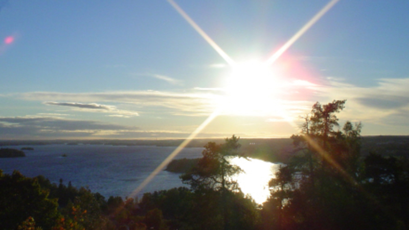 Sol og blå himmel