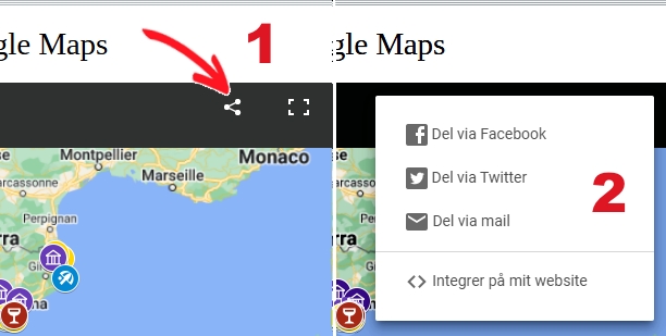 Du er velkommen til at dele Spanien i Dags Google Map-kort med andre. Du kan let gøre det på Facebook, Twitter (X), via email eller integrere kortet på din hjemmeside. Måske udlejer du en feriebolig og vil gerne tilbyde dine gæster den ekstra viden og service.