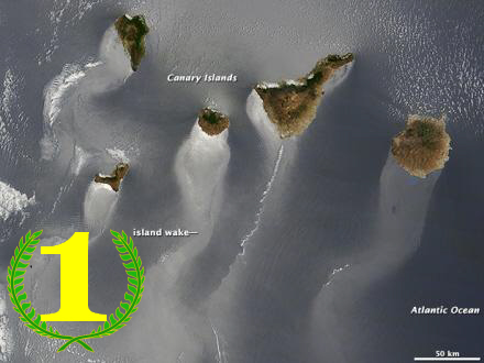 Billedet viser De Kanariske Øer med ”haler”, som egentlig er solens refleksion i bølger i havoverfladen. I finalen var De Kanariske Øer oppe imod et billede af et vulkanudbrud på Kliuchevskoi i Sibirien.