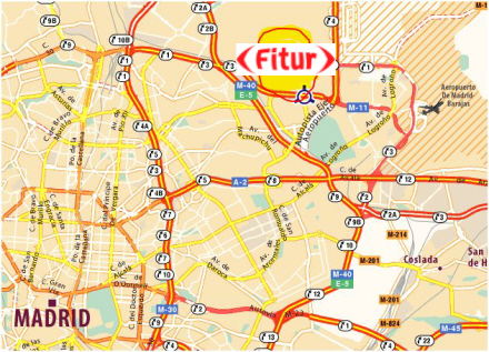 FITUR holdes i 'Feria Madrid' der ligger mellem Madris centrum og Bajaras-lufthavnen.