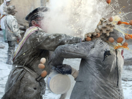 Du kan nemlig risikere at blive fanget i krydsilden mellem en besættelsestyrke og en oprørsbevægelse under festivalen Els Enfarinats. Tidligt om morgenen besætter en hær, der kaldes Els Enfarinats, byens torv. Iført militæruniformer og tungt bevæbnet med krudt, mel og æg indfører de love så skrappe, at de nuværende spareplaner virker moderate.