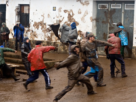 Festivaler, hvor der kastes med dyr, findes der også. Carneval de Laza byder på en masse ting, men vi zoomer ind på det mest bizarre element, Entroido. Det er en kamp, lige som så mange andre af de festivaler vi har beskrevet tidligere. Men denne er alligevel en tand værre, for her er det levende væsner, der kastes med.