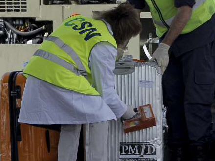 Her tjekkes al bagage fra flyet for radioaktivitet