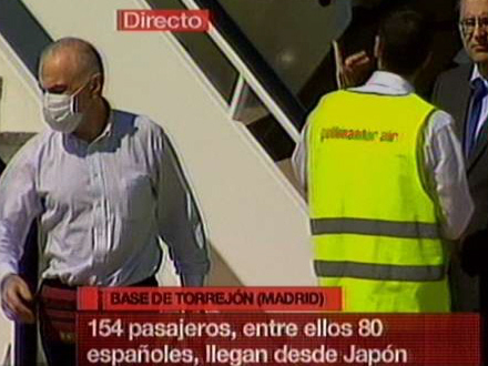 154 passagerer - heraf 80 spanske - blev næsten alle tjekket for radioaktivitet, da de ankom fra Japan til Madrid
