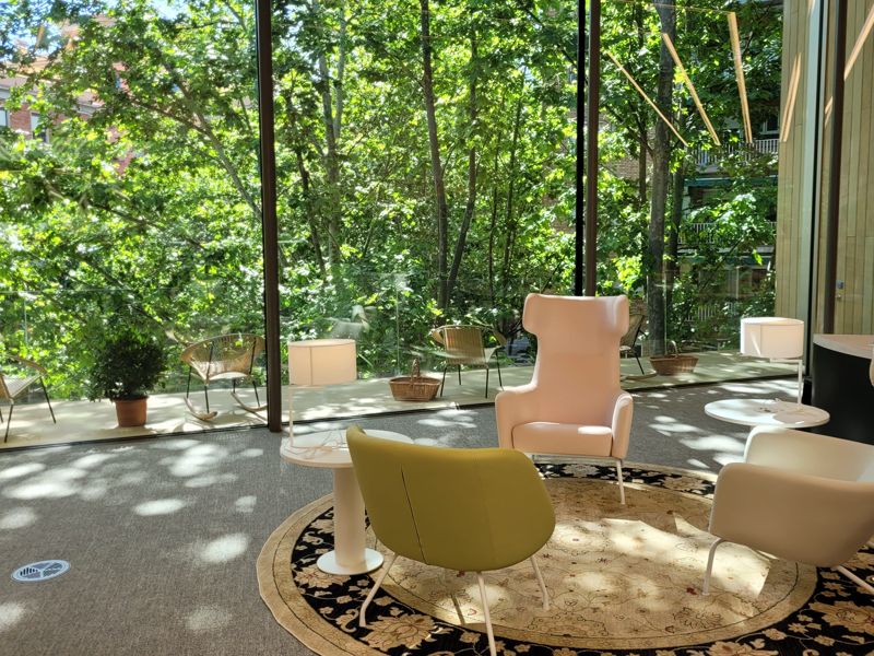Gabriel García Márquez-biblioteket, der blev indviet i maj 2022 som centralbibliotek i Barcelonas Sant Martí-distrikt, består af en seks etagers bygning med en eksponeret træstruktur på næsten 4.000 kvadratmeter, et stort "hus", der ser ud til at hænge og være halvt skjult mellem de høje platantræer, der omgiver det.