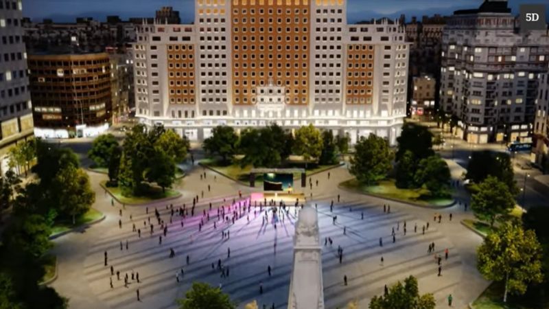 Butikkerne i Edificio España er integreret i Plaza de España-området, som er ved at blive renoveret som følge af projektet Welcome Mother Nature, hvor 90 procent af arealet bliver fodgængerzone og mere end 1.300 træer af over 50 arter skal plantes.