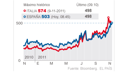 Efter åbningen i morges faldt den spanske risikopræmie til under de 500 basispoint efter intervention fra Den Europæiske Centralbank.