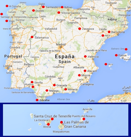 A Coruña Airport, Asturias Airport, Almería Airport, Bilbao Airport, Barcelona-El Prat Airport, FLG Granada-Jaén Airport, Ibiza Airport, Jerez Airport, La Palma Airport, Málaga-Costa del Sol Airport, Menorca Airport, Murcia San Javier Airport, Palma de Mallorca Airport, Reus Airport, Salamanca Airport, Santander Airport, Santiago de Compostela Airport, Seville Airport, Tenerife North Airport, Valencia Airport, Vigo Airport, Vitoria Airport, Zaragoza Airport.