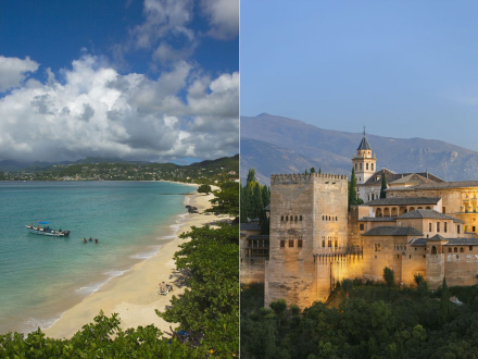 Mand og kone undrede sig over, hvorfor de fløj mod vest fra England, når rejsen gik mod det spanske. "Spanien? Vi er på vej til Caribien," lød stewardens svar. Granada og Grenada staves og udtales næsten ens, men de ligger ikke ligefrem tæt på hinanden.
