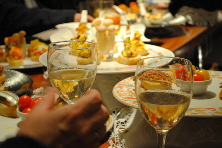 Mange af turisterne besøger barerne i San Sebastian gamle bydel, hvor de står i kø for at prøve regionens varemærke "pintxos". Pintxo betyder "spyd" og den bogstavelige oversættelse giver meget god mening: Adskillige velsmagende elementer spiddet fast til en skive brød.