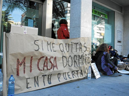 En gruppe demonstranter samledes i aftes i Madrid foran det konservative regeringspartis hovedkontor, hvor de krævede omfattende ændringer i loven. "Stop for ejendomsbranchens terrorisme” stod der på flere plakater.