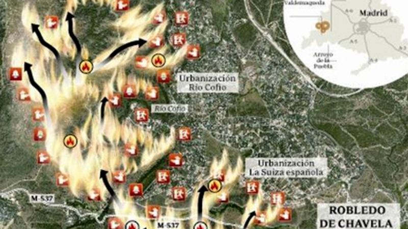 De seks brande, der mandag ramte flere beboelsesområder mellem Robledo de Chavela og Valdequemada i hovedstadsregionen Madrid er nu under kontrol.