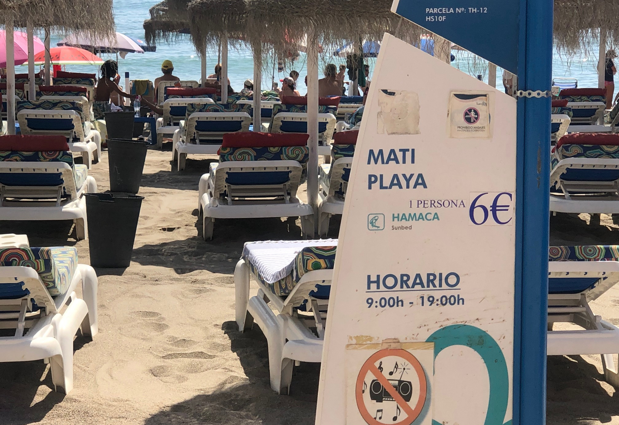 For selvom Playa Fuengirola med sine 1.650 meter nok må anslås have mere end et par liggestole til leje, er det bare ærgerligt på Mati Playa, hvis man kommer alene og bare vil leje en enkelt.