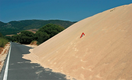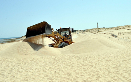 Den lokale landevej, der fører ud til fyret, er dækket af en meter sand. Det samme gælder for autoværn og vejskilte, der stikker op i ny og næ som malplacerede tandstikkere.