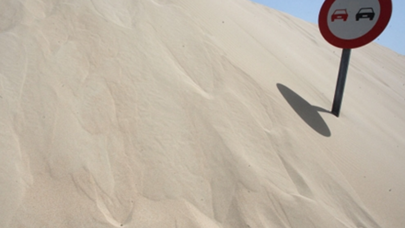 Et sandbjerg af imponerende dimensioner truer omkring 300 beboere i Valdevaqueros-området i Tarifa. Den berømte klit, som hvert år flytter sig flere meter vestpå, dækker vejen til, og isolerer dermed beboerne, der ”sander inde”.