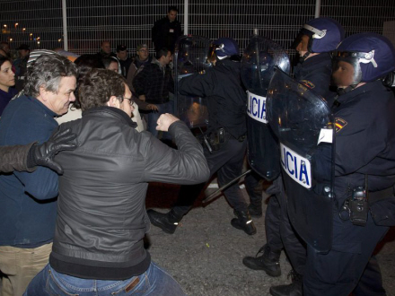 11.50: Barajas-lufthavnen i Madrid fik til formiddag besøg af 150 demonstranter, som gennemførte flere protester mod nedskæringer og besparelser inden for flytrafikken. Flere strejkevagter forsøgte at lukke en kiosk. Demonstranter i lufthavnen krævede løsladelse af den første person, der i nat blev anholdt under en aktion foran en McDonald's restaurant.