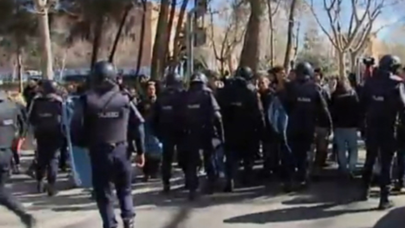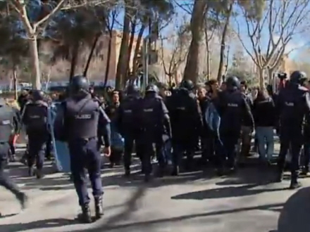 Madrids Complutense Universitet var hele dagen ramt af demonstrationer. Universitetet tilkaldte politiet, da de ansatte ikke kunne komme på arbejde.