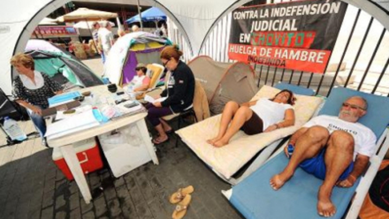 Der opstod store tumulter, da to af de i alt 11 ulovlige huse for fire år siden blev revet ned, og nu skal de resterende ni så også jævnes med jorden. I alt seks personer sultestrejker. De sultestrejkende har indkvarteret sig i telte på på Plaza La Candelaria og har intet andet sted at bo.