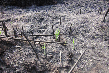 En uge efter ryger det stadig fra de afbrændte stubbe