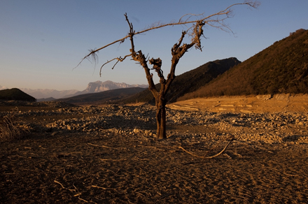 Et træ fra den gamle landsby Mediano, der normalt er dækket af vand