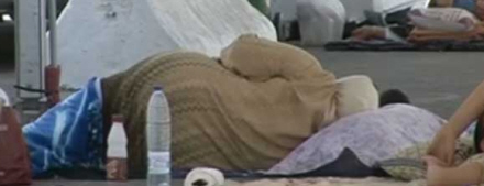 Tæpper lægges ud på asfalten, og søvnen nydes under stjernehimlen.