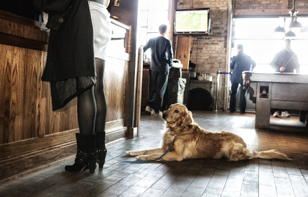 Husk at hunden skal være i snor og opføre sig ordentligt blandt de øvrige gæster