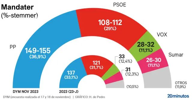 PP ville selv i målingens værste fald kunne danne regering med støtte fra Vox, og Sánchez ville ikke have skyggen af matematisk chance for at danne regering