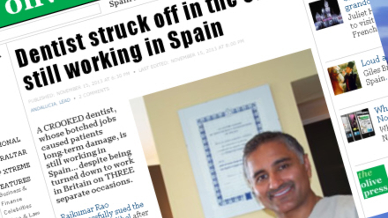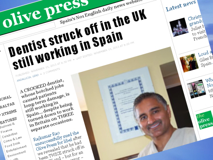 Olive Press har flere gange tidligere skrevet om tandlægen, og det fik ham på et tidspunkt til at hive avisen i retten i Coín på anklager om injurier. Men da det kom til stykket, gad Rao ikke rigtig alligevel. Olive Press skriver i november 2011, at han undlod at møde.
