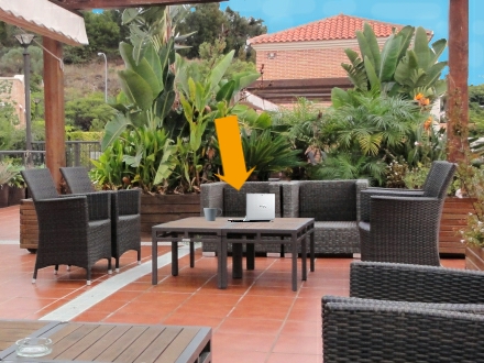 Jeg er taget op til Nordisk Senior Service's beskyttede boliger og sat mig på terrassen med min bærbare computer for at skrive min lørdagsklumme.