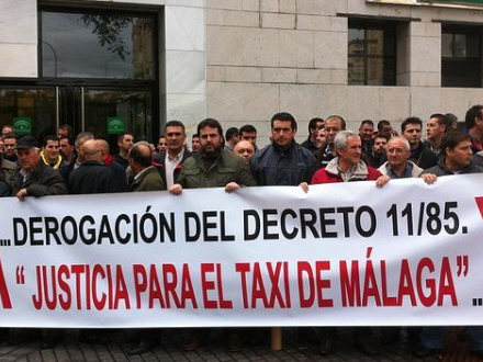 Lige over 100 taxachauffører samlede sig i sidste uge ved hovedindgangen til Afdelingen for Offentlige Arbejder i Málaga og krævede ophævelse af dekretet, som, de mene, er unfair konkurrence over for de taxavognmænd, der er tilmeldt Málaga Kommune.