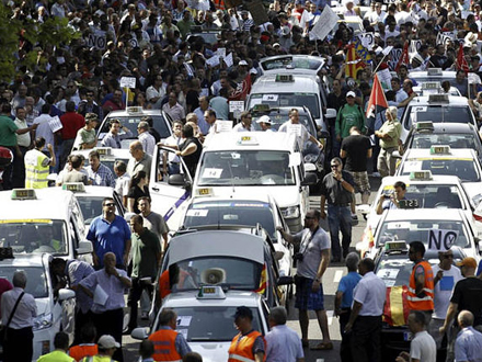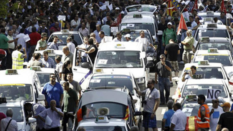 Under en række protestaktioner i Madrid i weekenden blev fem personer anholdt, og der var flere tilfælde af optøjer med mellem taxachuffører og urobetjente.