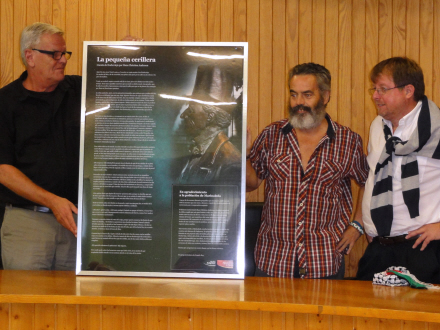 Torben og Jesper overdrager gruppens gave til Gordillo