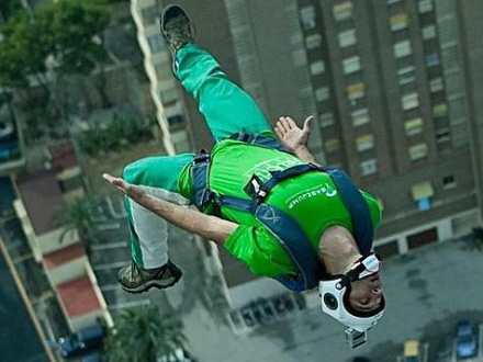 Basejumping er udspring fra høje klipper eller bygninger med faldskærm og eventuelt et wingsuit, der gør det muligt at svæve gennem luften.