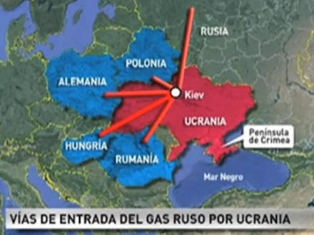 I nyhedsoversigten blev der vist et kort over Europa med fokus i Østeuropa, som skulle illustrere konsekvenserne af krisen i Ukraine for Europas gasforsyning .