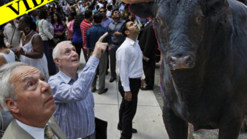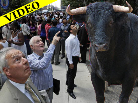 Fire parkerede biler fik sig en omgang buler. Omkring 100 tilskuere hjalp med at indfange tyren ved at danne en menneskekæde, indtil de ansvarlige var i stand til at kaste en lasso om halsen på ham og binde ham til et træ, indtil der nåede en transport bil frem.