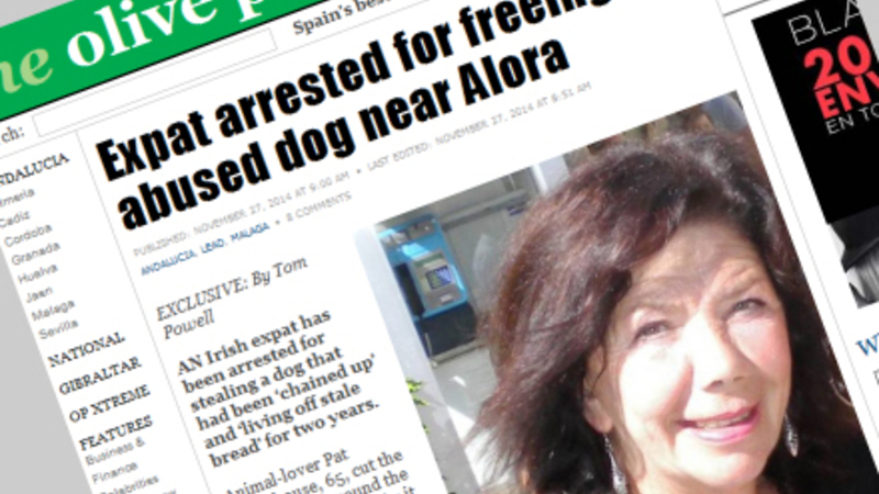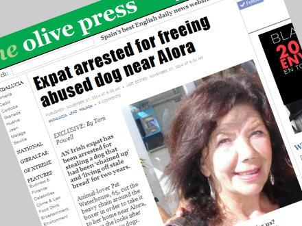 Guardia Civil bekræfter over for Olive Press, at Waterhouse blev anholdt for tyveri af en hund, og at hun står over for straffesag.