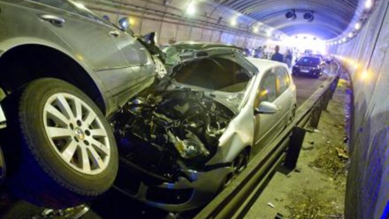 Mindst ti biler blev involveret i et gigantisk harmonikasammenstød, som bredte sig bagud til de øvrige bilister, som var på vej gennem tunnellen.