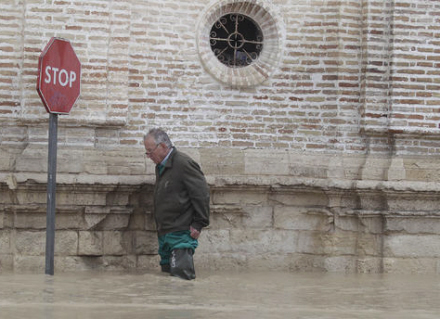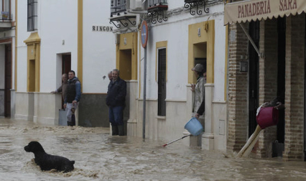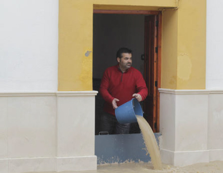 90 personer blev i går evakueret, efter at vandstanden i Guadalquivir-floden er steget til nye faretruende højder. Gader står under vand, og borgere forsøger desperat at holde det våde element ude af husene.