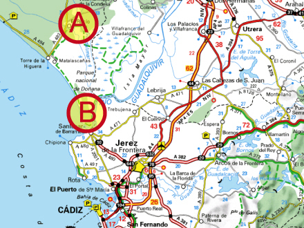A: El Rocio B: La Doñana