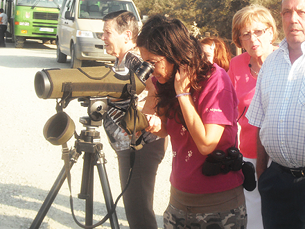 Passagerne fik alligevel valuta for pengene. Bussen standsede på vej tilbage ved en stor sø. Guiden monterede en præcisionskikkert og tilbød alle at studere skestorke, kobbersnerper og lyserøde flamingoer i det mudrede vand.