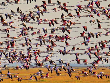 En stor flok flamingoer som denne, er ikke et sjældent syn her