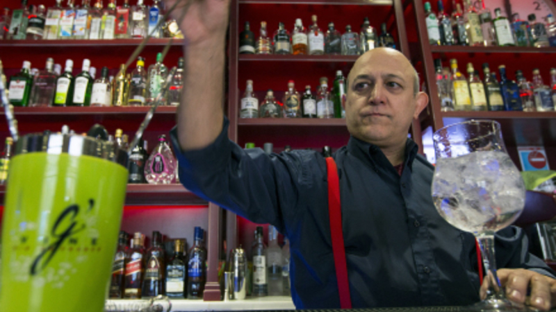 Bartender Javier Borja er en garvet herre. Han har mikset drinks i over 40 år og siger, at der helt grundlæggende er fire familier af gin: de aromatiske lavet på enebær, de tørre, de destillerede og så London Dry Gin, der appellerer til de klassisk gin og tonic.