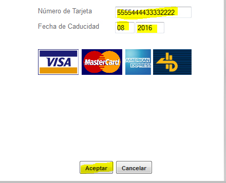 - Skriv kortets udløbsmåned og år i 'Fecha de Caducidad'